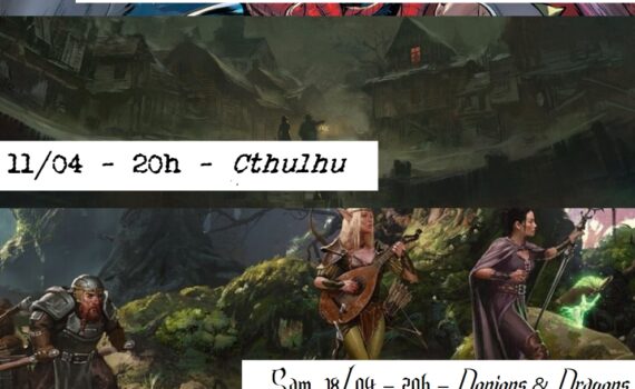 Une nouvelle sélection de jeux de rôles riche et variée pour animer nos vendredis et samedis soir ! Sam. 04/04 : Marvel Multiverse rgp.Entrez dans la peau de vos héros et héroïnes de comics préféré·es ! Sam. 11/04 : Cthulhu.Des secrets insoupçonnés vous attendent à l’issue d’enquêtes déroutantes… Sam. 18/04 […]