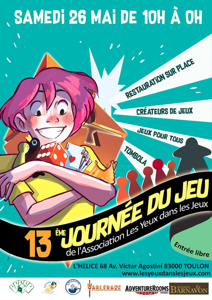 14 heures de jeu non stop, plus de 200 jeux sur place, des tournois, des parties de Loups-Garous de Thiercelieux, des prototypes présentés par les Auteurs de Jeux Toulonnais, des jeux en plein air…