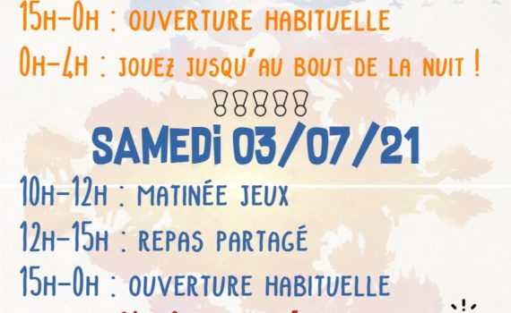 Attention notez bien : à partir du mois d’octobre 2020 – donc ce mois-ci ^^ – nous ouvrions la Maison Méditerranéenne des Jeux à 14h tous les mercredi ! Encore plus de temps pour jouer en famille ou entre ami-es et profiter de nos plus de 2 500 jeux 🙂