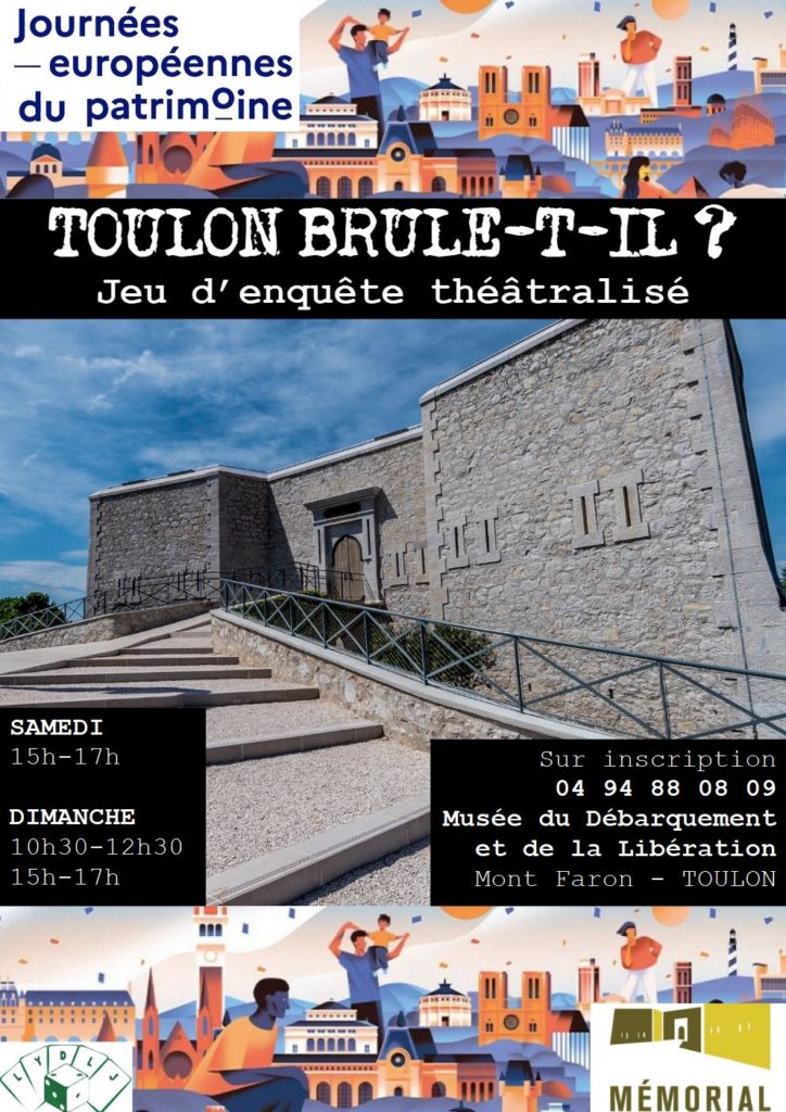 Sam. 20/009/25 – 15h-17h / Dim. 21/09/25 – 10h30-12h30 & 15h-17h – Musée du Débarquement et de la Libération (Faron – Toulon) : Toulon brûle-t-il ? Dans le cadre des Journées Européennes du Patrimoine.