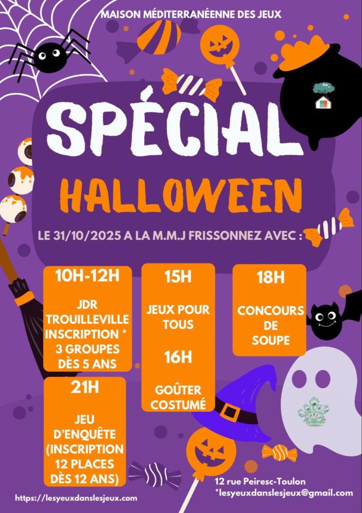 18h : concours de soupes ! Après vous être mis aux fourneaux chez vous, apportez votre marmite ou votre soupière pour en faire profiter nos joueurs et joueuses qui, pour l’occasion, se mueront en jury culinaire ! Régalez leurs papilles pour être élu·e « meilleur·e Cordon Bleu·e d’Halloween » et gagner un petit jeu !