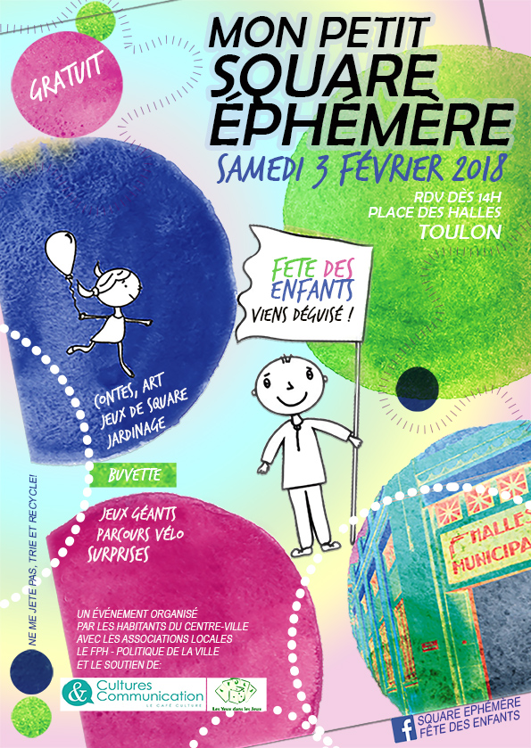 Le samedi 03/02/18 après-midi, nous serons partenaires du Petit Square Ephémère que les habitants du Centre Ville de Toulon, épaulés par différentes associations, vont installer.